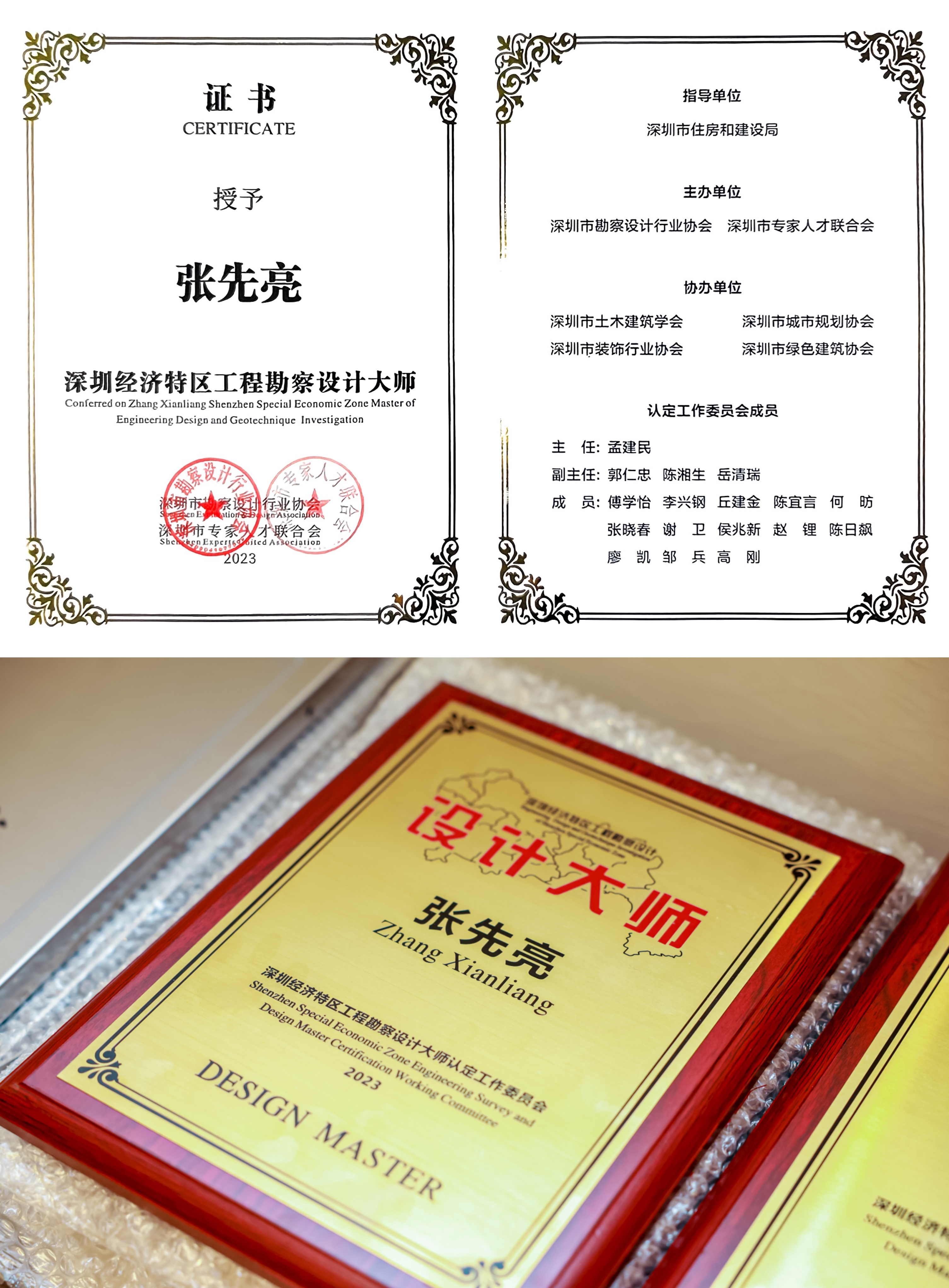 随后举行的是深圳经济特区工程勘察设计大师颁证仪式,我司副总经理张先亮获此殊荣。