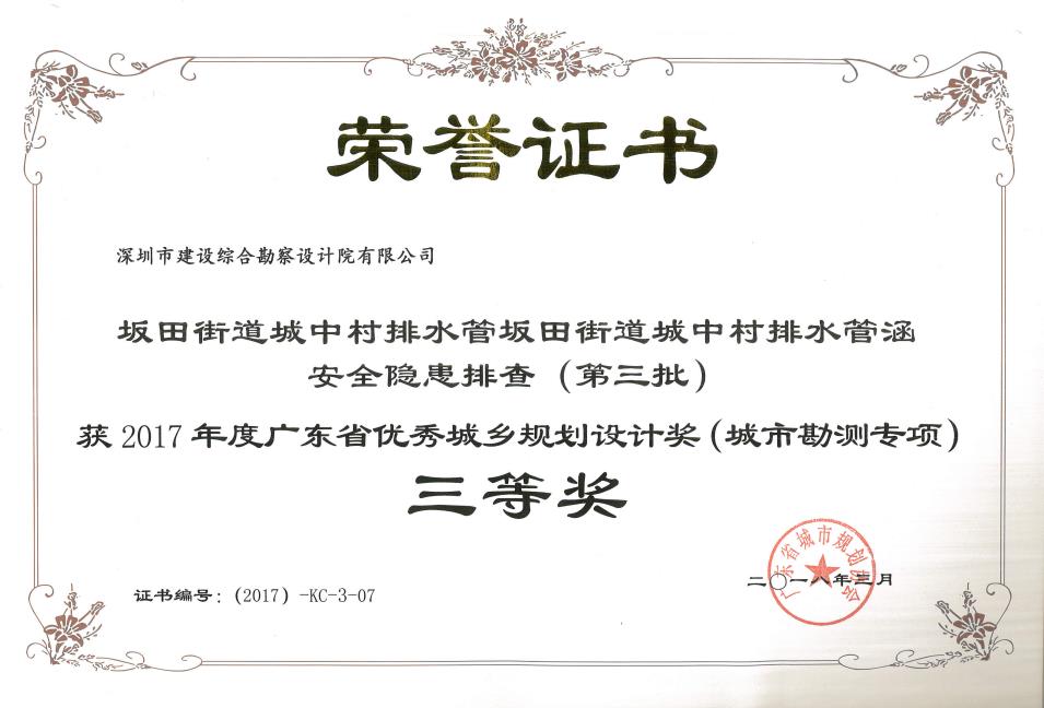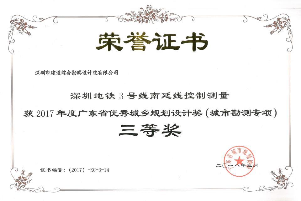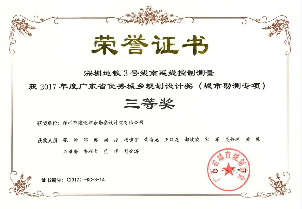 深圳地铁3号线南延线控制测量-2017年度广东省优秀城乡规划设计奖-三等奖