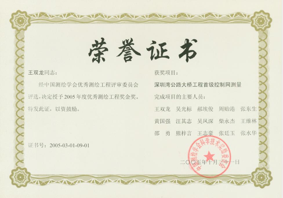 深圳湾公路大桥工程首级控制网测量--中国测绘学会金奖