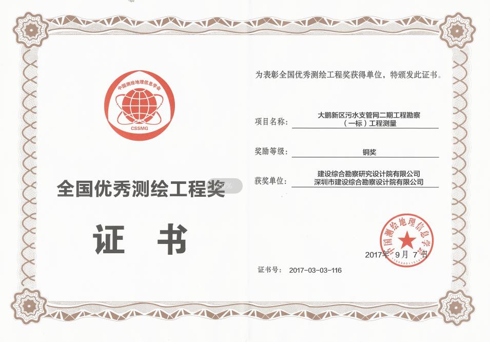 大鹏新区污水支管网二期工程勘察(一标)工程测量—铜奖