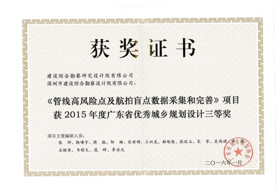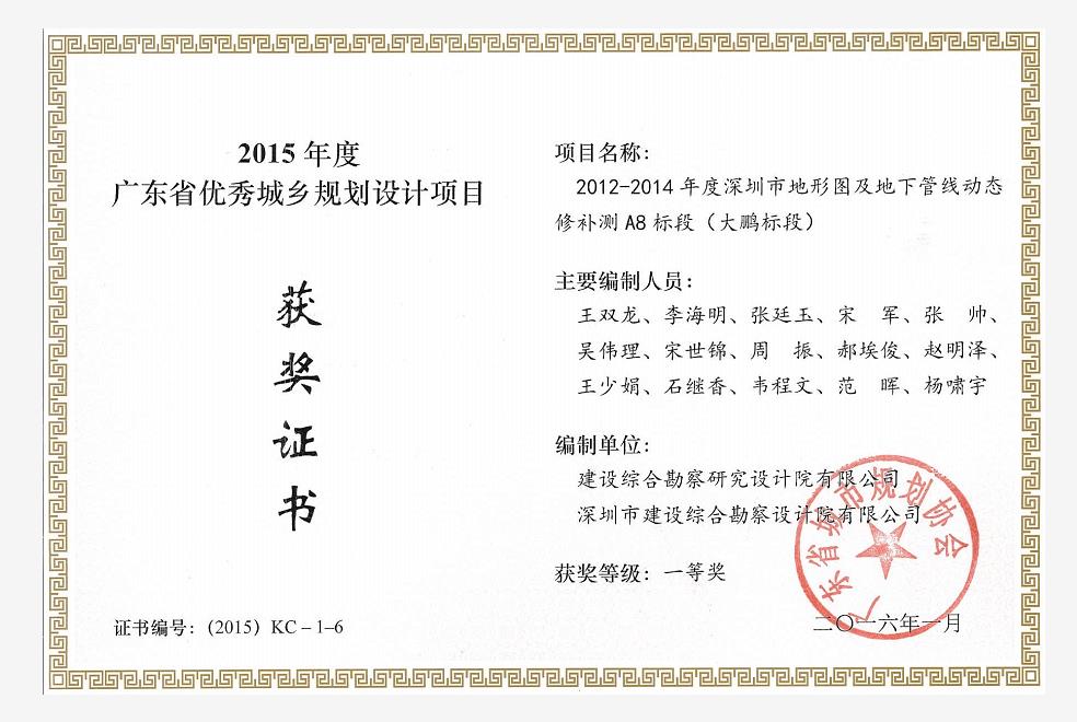 2012-2014年度深圳市地形图及地下管线动态修补测A8标段--广东省城市规划协会一等奖