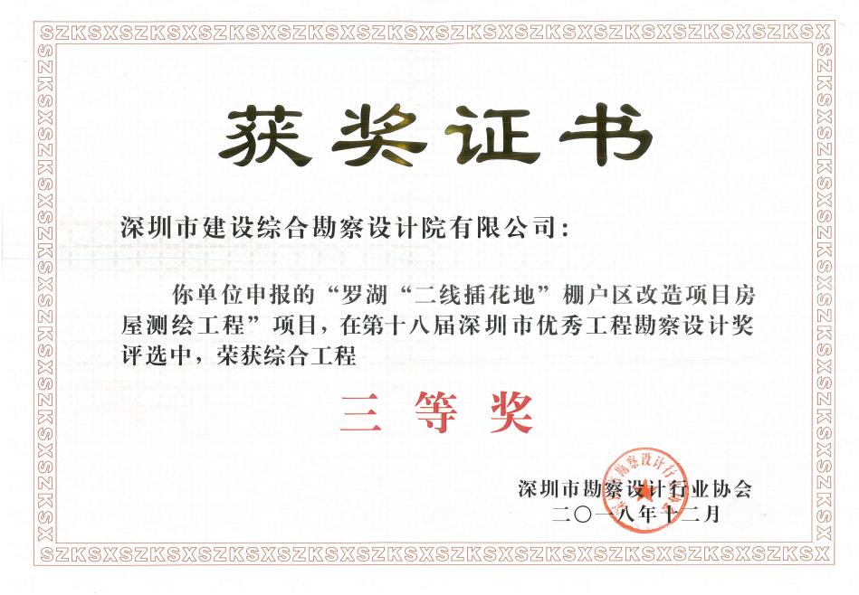 罗湖”二线插花地“棚户区改造项目房屋测绘工程—三等奖
