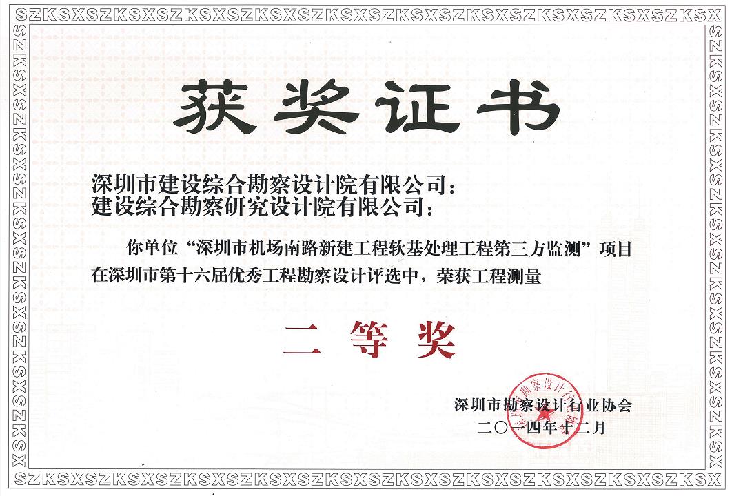 深圳市机场南路新建工程软基处理工程第三方监测—二等奖