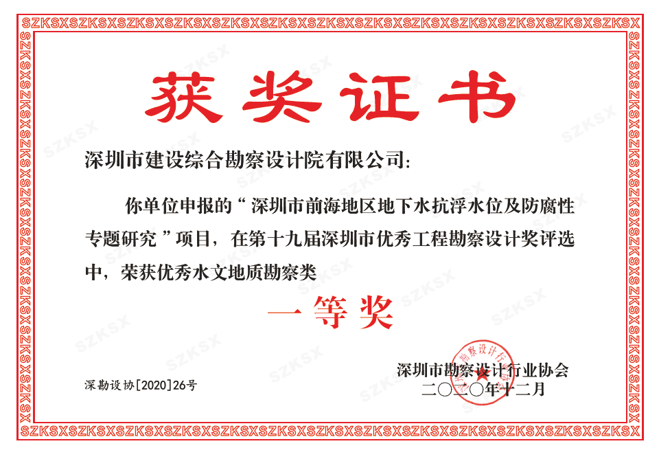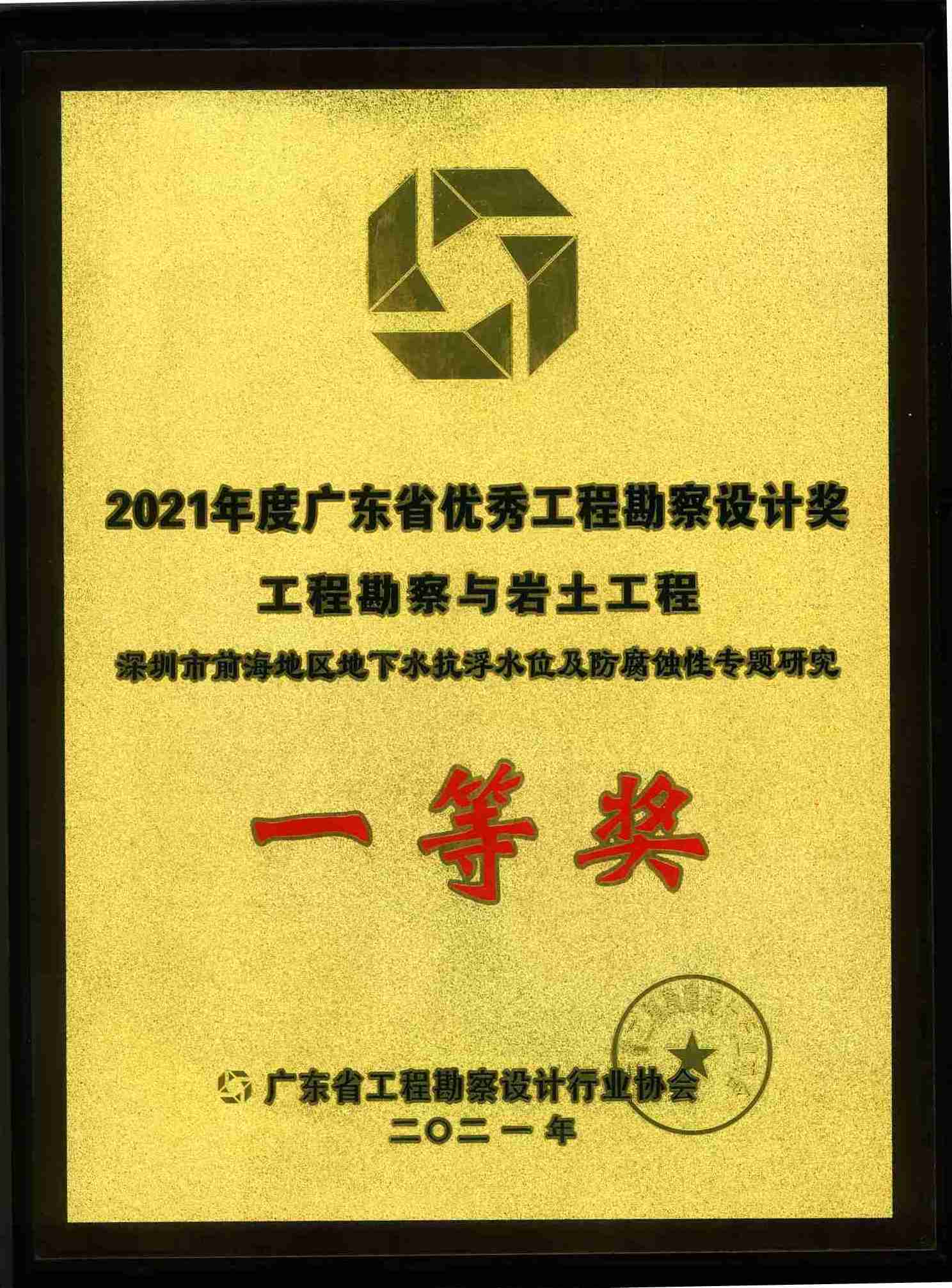 深圳市前海地区地下水抗浮水位及防腐性专题研究-省勘察设计协会一等奖