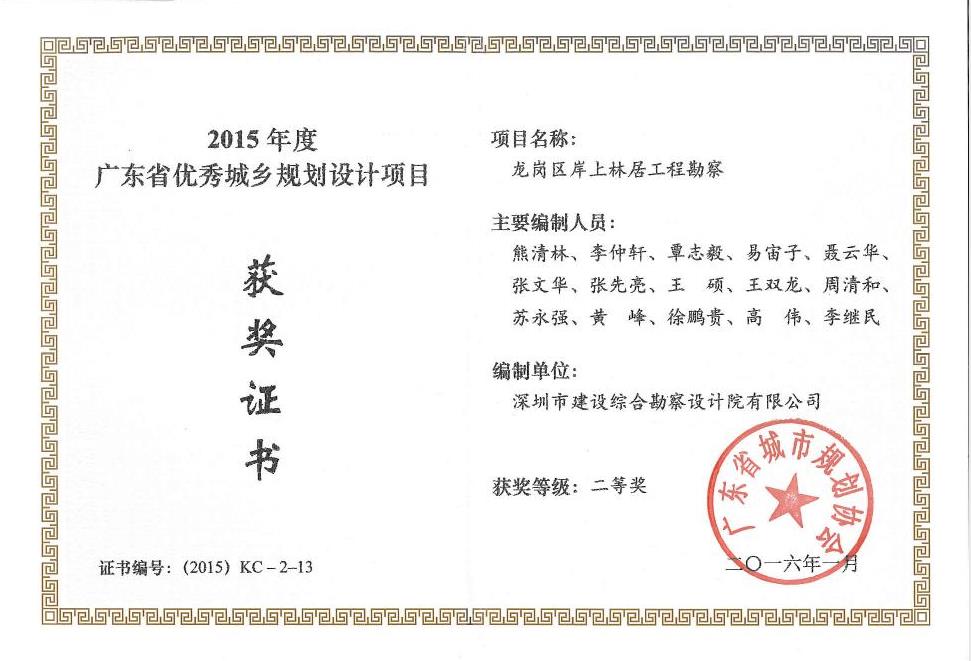 龙岗区岸上林居工程勘察--广东省城市规划协会二等奖(排名靠后)