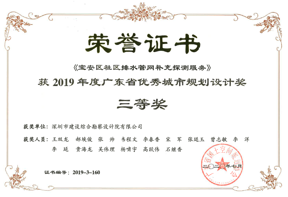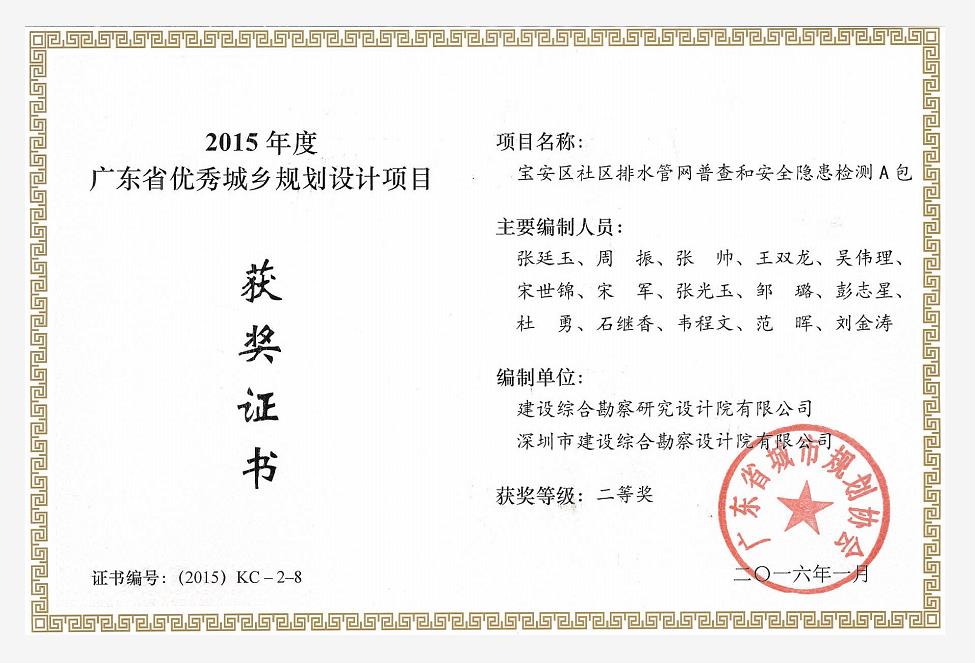 宝安区社区排水管网普查和安全隐患检测A包--广东省城市规划协会2015年度二等奖