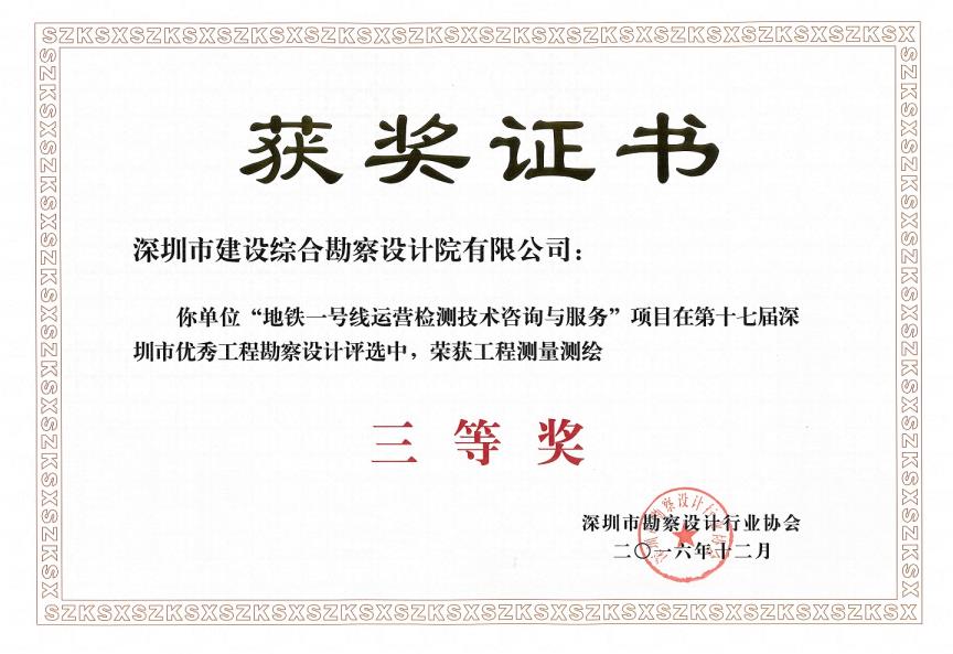 地铁一号线运营检测技术咨询与服务 —三等奖