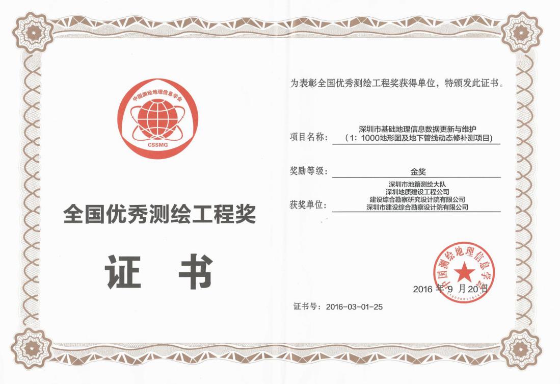 深圳市基础地理信息数据更新与维修(11000地形图及地下管线动态修补测项目)—金奖