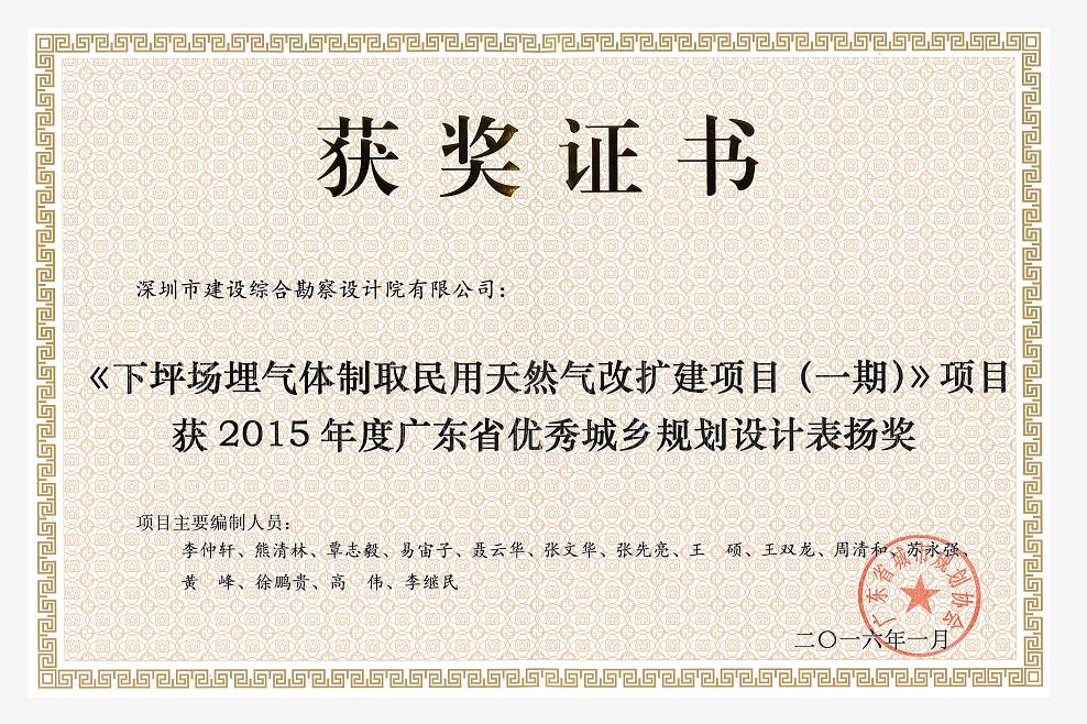 下坪场埋气体制取民用天然气改扩建项目(一期)—表扬奖