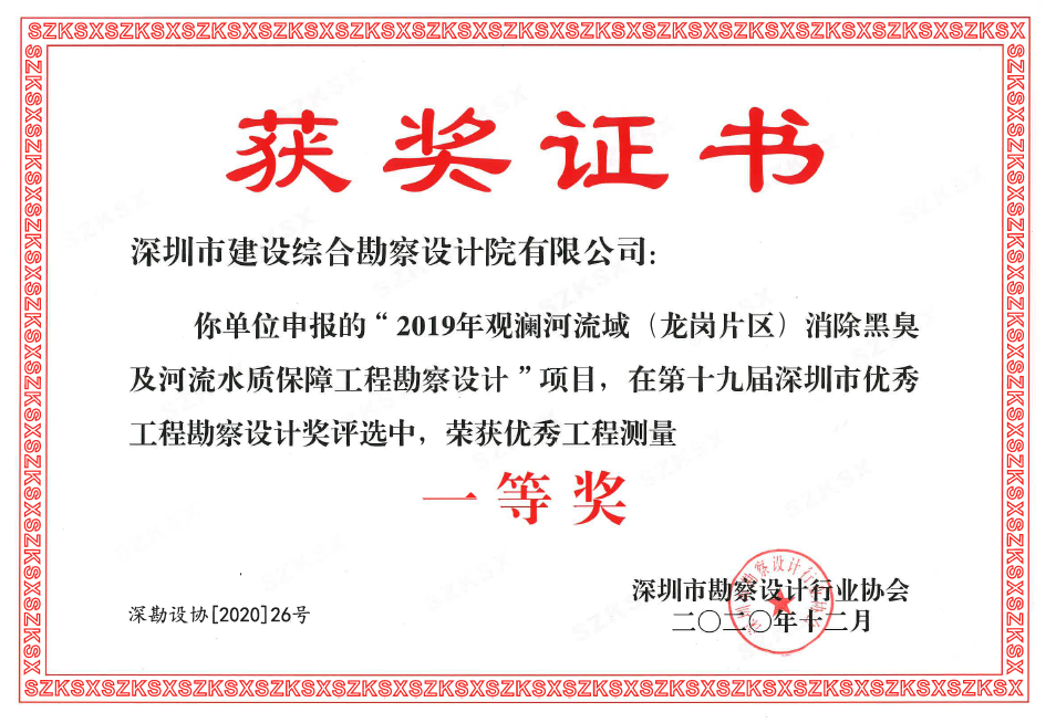 2019年观澜河流域(龙岗片区)消除黑臭及河流水质保障工程勘察设计-一等奖