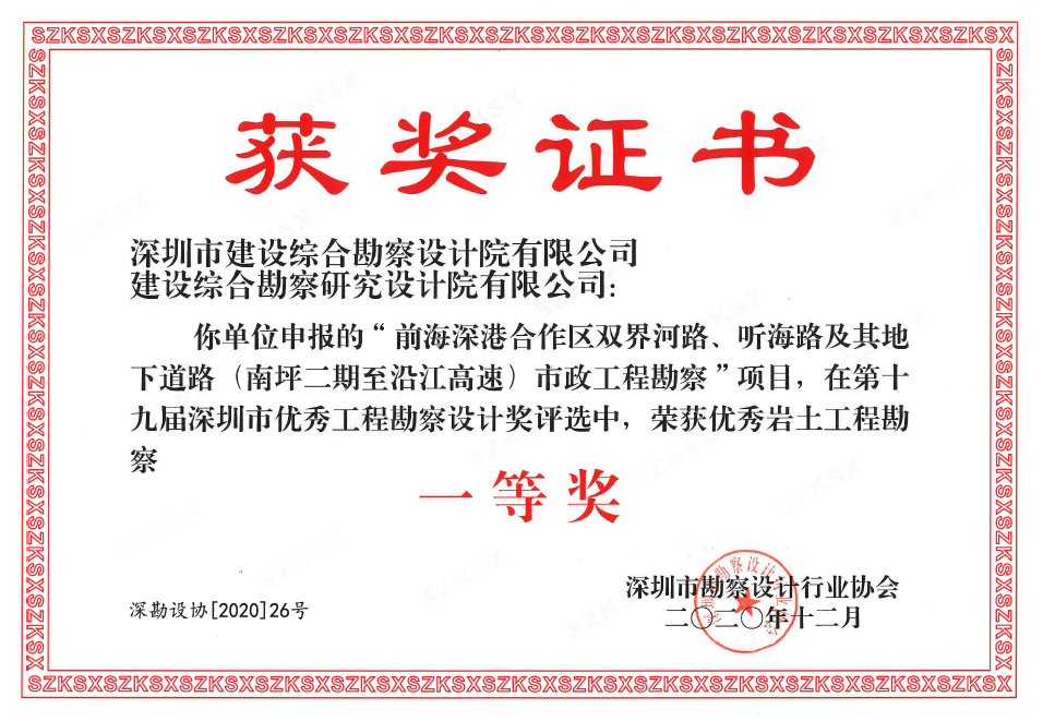 前海深港合作区双界河路、听海路及其地下道路(南坪二期至沿江高速)市政工程勘察-一等奖)