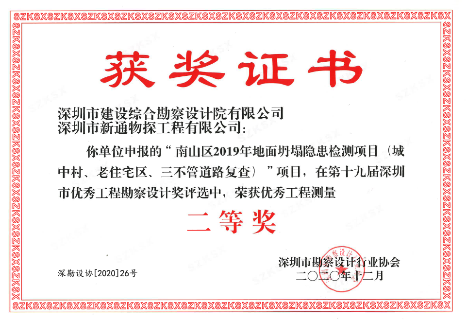 南山区2019年地面坍塌隐患检测项目(城中村、老住宅区、三不管道路复查)-二等奖)