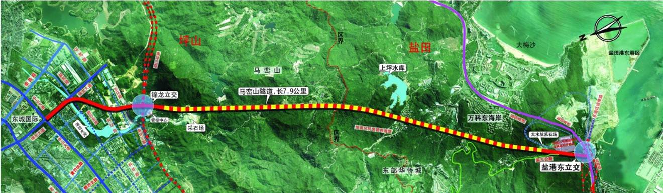 项目概况:北起坪山区现状锦龙大道-坪山大道路口,南至盐田区盐坝高速、规划盐港东立交,全长约11公里,城市快速路,双向6车道,建安工程费40亿元。